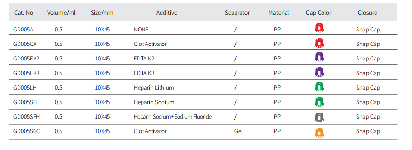 மைக்ரோ இரத்த சேகரிப்பு குழாய் என்பது சிறிய அளவிலான இரத்த மாதிரிகளுக்காக வடிவமைக்கப்பட்ட ஒரு சிறிய இரத்த சேகரிப்பு குழாய் ஆகும். இது வழக்கமாக மைக்ரோ-இரத்த சேகரிப்புக்கு பயன்படுத்தப்படுகிறது, பொதுவாக 0.5 மிலி ~ 2 மிலி, மற்றும் புதிதாகப் பிறந்த திரையிடல் அல்லது இரத்த சர்க்கரை மற்றும் இரத்த வழக்கம் போன்ற உயர் அதிர்வெண் கண்காணிப்பு போன்ற சேகரிக்கப்பட்ட இரத்தத்தின் அளவைக் குறைக்க வேண்டிய காட்சிகளுக்கு இது ஏற்றது.