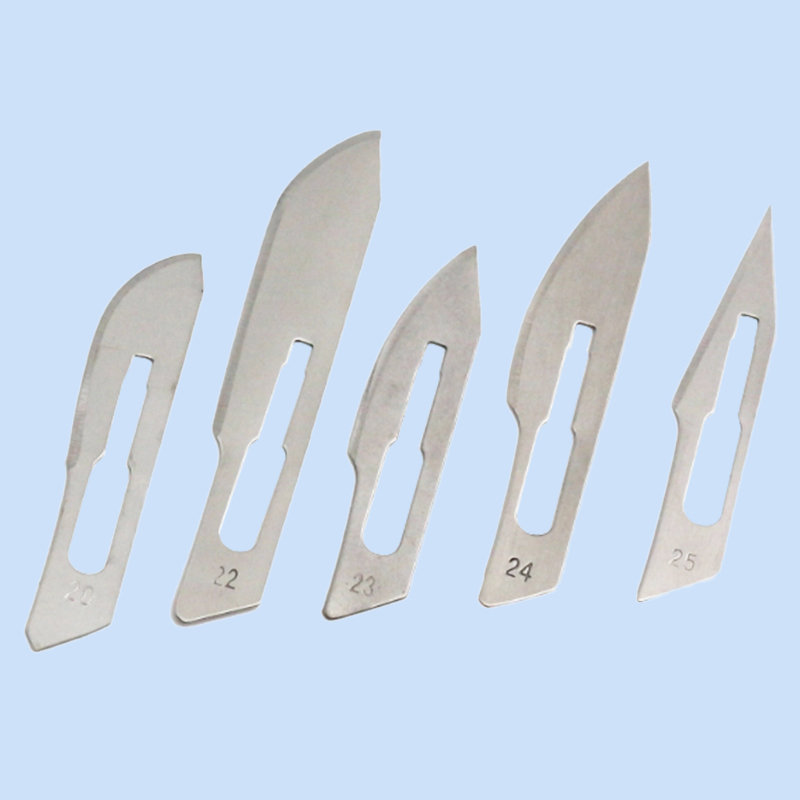 பயன்பாட்டுக் காட்சிகளைப் பொறுத்தவரை, 20-23 பெரிய வட்ட பிளேடு தோல், தசை மற்றும் பிற திசுக்களை வெட்டுவதற்கு ஏற்றது, 15 சிறிய வட்ட பிளேடு கண் மருத்துவம் மற்றும் கை அறுவை சிகிச்சை போன்ற சிறந்த செயல்பாடுகளில் நிபுணத்துவம் பெற்றது, 11 புள்ளிகள் கொண்ட பிளேடு இரத்த நாளங்கள், நரம்புகள் மற்றும் இதய திசுக்களை வெட்டுவதற்கு துல்லியமாக பொருத்தப்பட்டுள்ளது. எண்.10 பெரிய வளைந்த கத்தி வயிற்று அறுவை சிகிச்சை போன்ற பெரிய கீறல்களை வெட்டுவதற்கு ஏற்றது. கூடுதலாக, மைக்ரோ பிளேடுகள் மற்றும் தோல் மாற்று கத்திகள் போன்ற சிறப்பு மாதிரிகள் கண் மருத்துவம், தீக்காய அறுவை சிகிச்சை மற்றும் பிற சிறப்புத் துறைகளில் அவற்றின் பயன்பாட்டு காட்சிகளை மேலும் விரிவுபடுத்தியுள்ளன. அவை அளவு 3 மற்றும் 4 போன்ற நிலையான கத்தி கைப்பிடிகளுடன் இணக்கமாக இருக்கும், மேலும் உலகளவில் முக்கிய அறுவை சிகிச்சை கருவி விவரக்குறிப்புகளுடன் இணக்கமாக இருக்கும்.