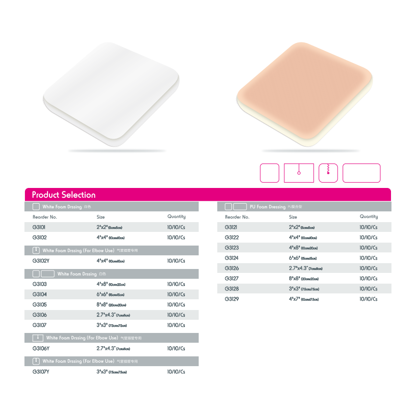 நுரை ஒத்தடம் என்பது உறிஞ்சக்கூடிய, நுண்துளைப் பொருட்களால் செய்யப்பட்ட மென்மையான, திணிப்பு காய பராமரிப்பு பொருட்கள் ஆகும். அவற்றின் முக்கிய பலம், மிதமான மற்றும் கனமான காயம் வடிகால்களை நிர்வகிப்பதில் உள்ளது, அதே நேரத்தில் காயம் படுக்கையை சரியான ஈரப்பதத்துடன் குணப்படுத்துவதை துரிதப்படுத்துகிறது. மென்மையான நுரை குஷனிங் மற்றும் பாதுகாப்பை வழங்குகிறது, மேலும் அவற்றின் ஒட்டாத மேற்பரப்பு வலியற்ற நீக்கத்தை அனுமதிக்கிறது.
